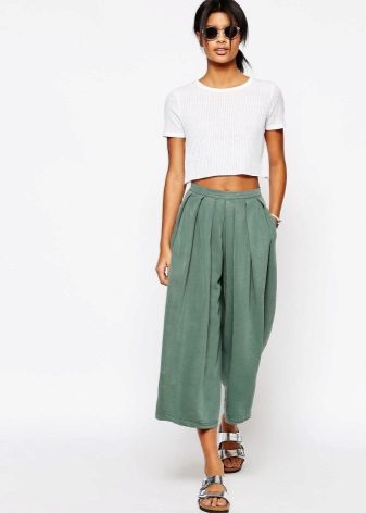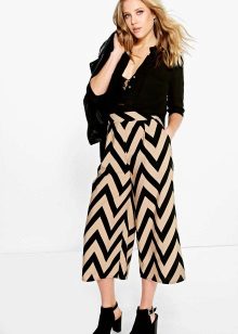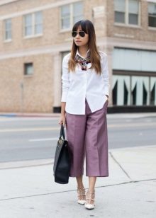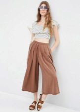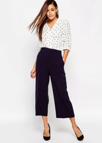 Stylish culottes with a high waist, which allow to emphasize a thin waist and hide plump hips. This is especially true for girls with the figure of "pear" or "hourglass."