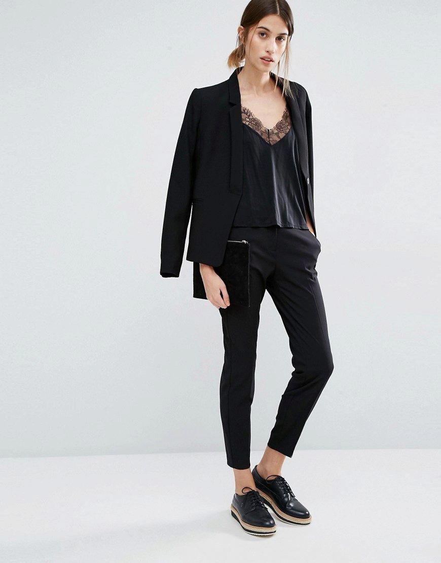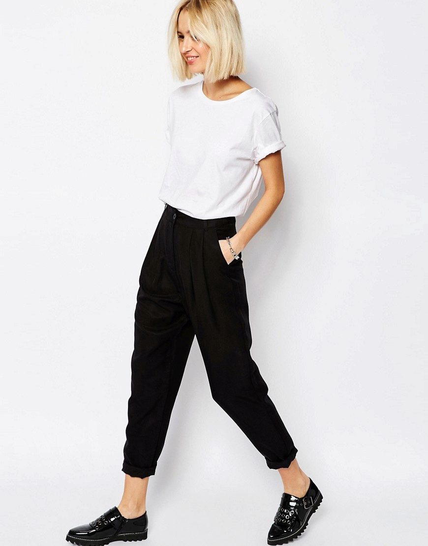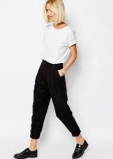 Black pants should be in the wardrobe of any girl. If you still have not decided on the model, choose narrowed to the bottom, slightly opening the ankle - they are universal. These pants will fit into the business dress code and in any democratic look.