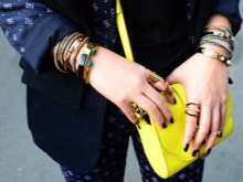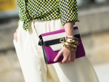 - Correct accents and effectively complete the image will help you a variety of accessories. In the summer, in everyday fashion, you can afford massive necklaces, bracelets, rings, earrings, bright handbags and clutches.