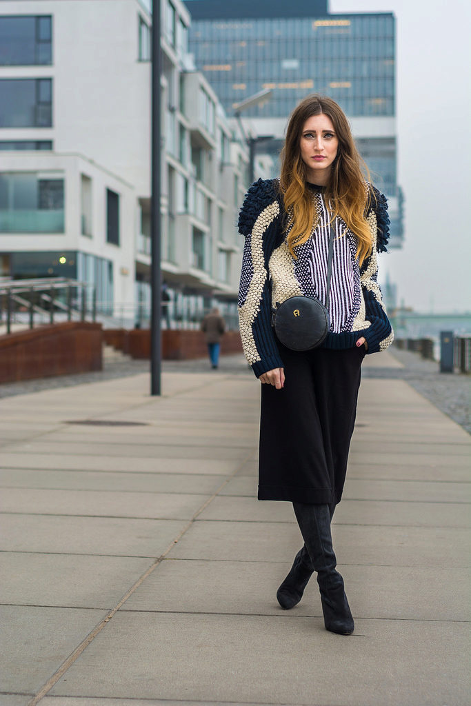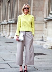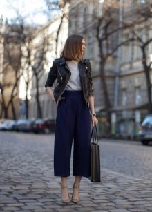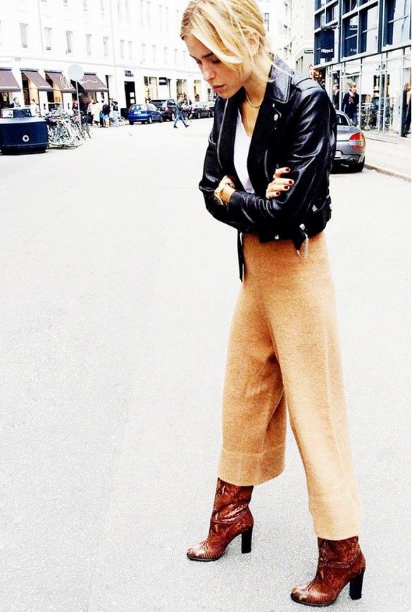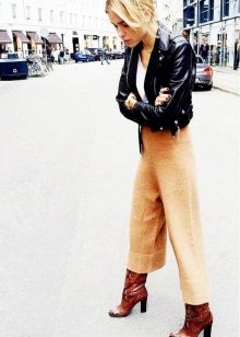 Cropped trousers, with the exception of culottes, categorically should not be worn with high boots, such a tandem would look ridiculous. In the cold season it is best to wear them with ankle boots on a massive heel.