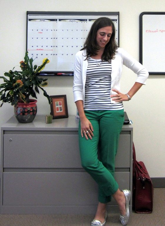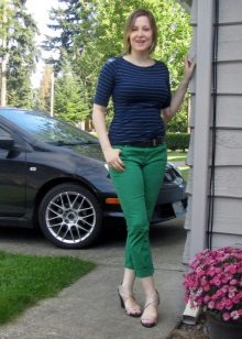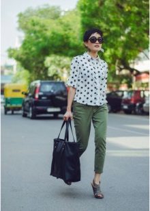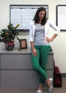 Depending on your chosen shade, you can use green trousers in classic bows or casual style. They are perfectly combined with a beige, black or white top. If such a tandem seems too boring to you, add bright accessories. For example, yellow, red or blue.