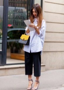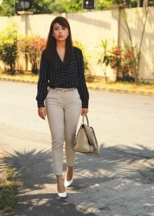When choosing the top and accessories for the shortened pants, be guided by where you are going to go in the image you have compiled. To work, wear them with business clothes that you are used to; for casual look, choose a shirt or a t-shirt. There are no particular restrictions on the choice of clothes, but there are general recommendations that will help you look beautiful and stylish.