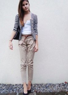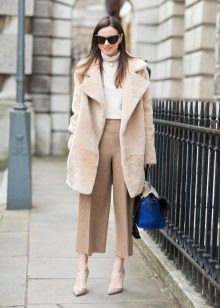 Beige cropped trousers are also versatile, they are suitable for creating different images. They belong to neutral colors, so they are easily written off in a business wardrobe in a company with white or black clothes.