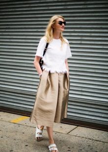 Any model has its own characteristics. Chinos are recognizable thanks to folds at the hips, and culottes look like a midi skirt.