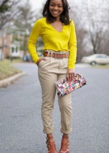 In any situation that does not require a hard dress code, beige pants will be an excellent basis for creating a light and free image. They are perfectly combined with pastel and bright colors, so it is easy to fit into a festive, casual or romantic image.