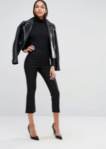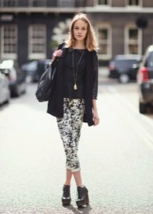 Models that are several centimeters above the ankle are considered shortened. The length of 7/8 comes to the middle of the calf, and even shorter models are called capris. These pants, though differ in a narrowed cut, but do not fit tightly to the leg, unlike the tabernacle.