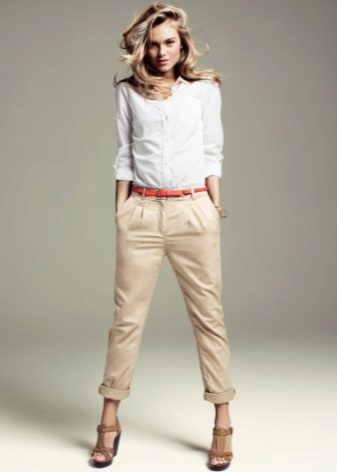 Also, there are other models of shortened pants. For example, chinos are loose trousers with pockets embedded at the sides and tucks at the waist, which have come to everyday wardrobe from a military uniform.