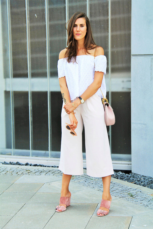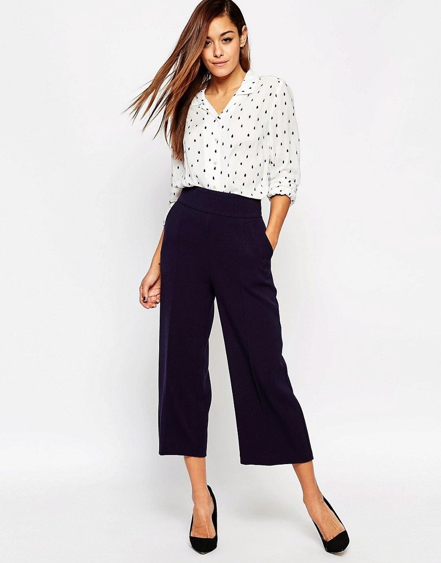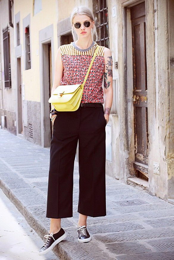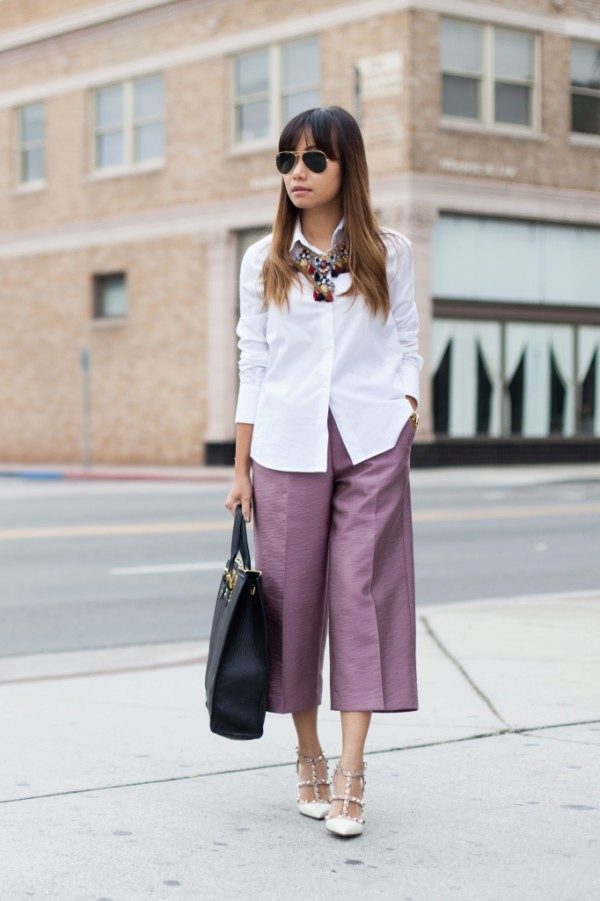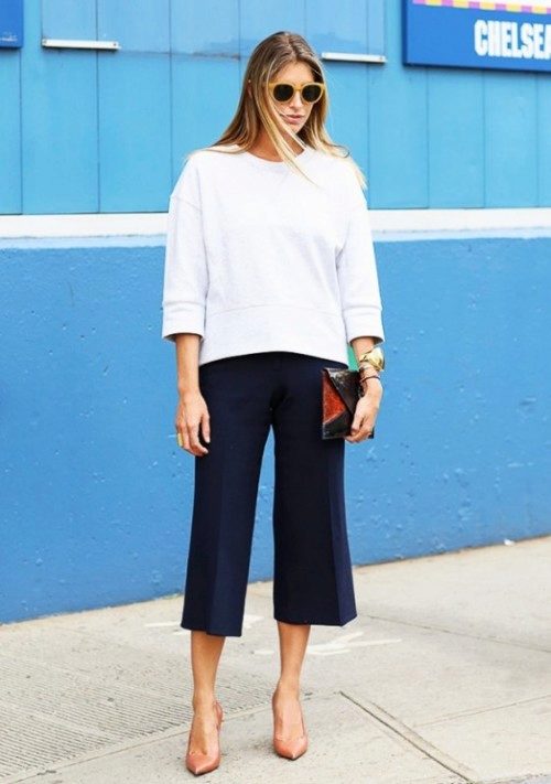 The rest is worth wearing them with a fitted top and shoes with heels. As for color, choose solid models, but if you like printed culottes, let it be small and repetitive.