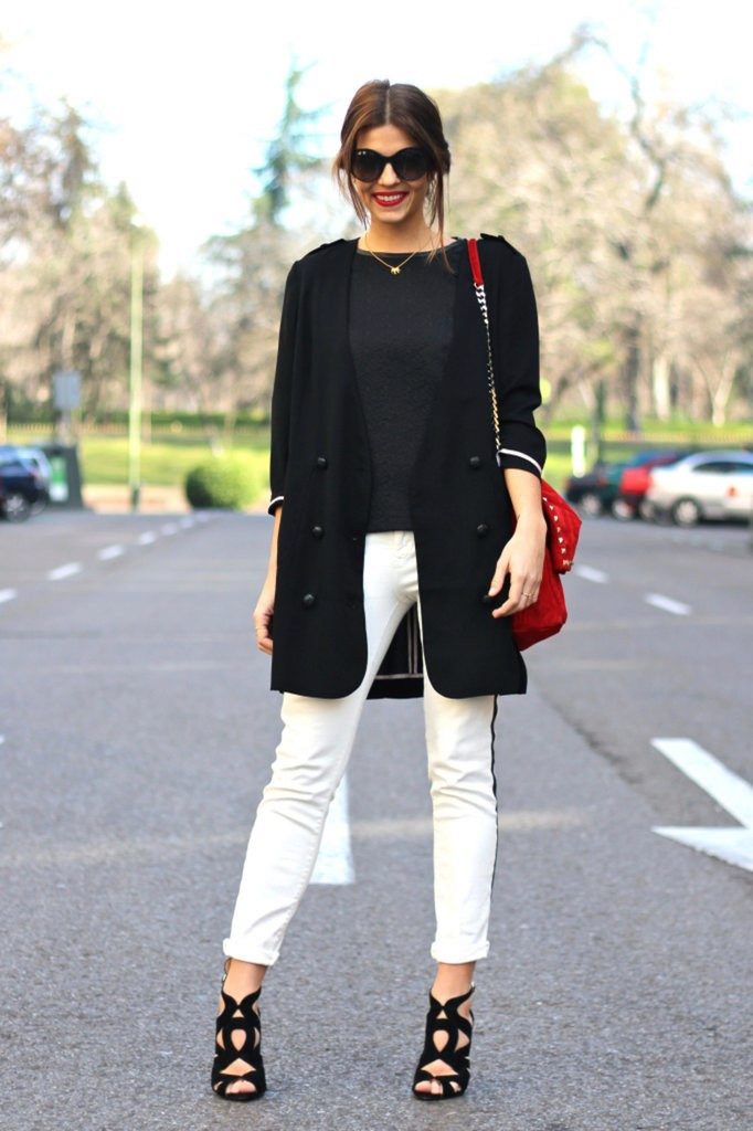 Wear white trousers with a neutral color scheme to work, and pick up bright saturated colors for a party. It is worth considering that white pants are mostly suitable for slim girls, because they visually add volume to your forms. If you can not boast the perfect figure, choose white straight cut pants that gently outline the silhouette and hide all the flaws.