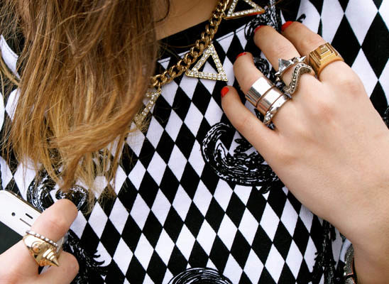 - If you are a fan of street style, you can not even think about the number of decorations. Several chains, bracelets and rings will be perfectly combined with short pants, T-shirt and leather jacket.