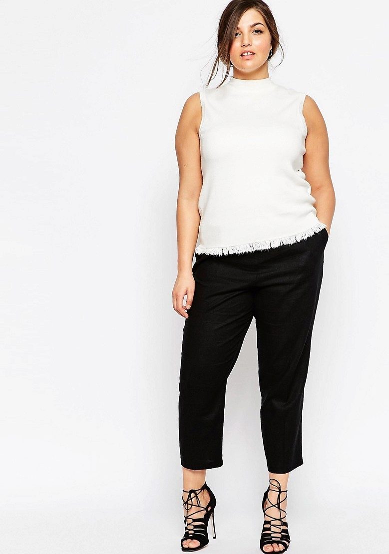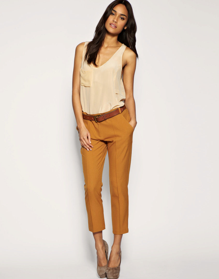 Cropped trousers with arrows can be tapered or straight. The arrows visually make the legs longer, so this style is ideal for short girls. They also allow you to slightly stretch the silhouette of girls with forms. These pants look very elegant, they are perfect for a business image, making it moderately strict and stylish.