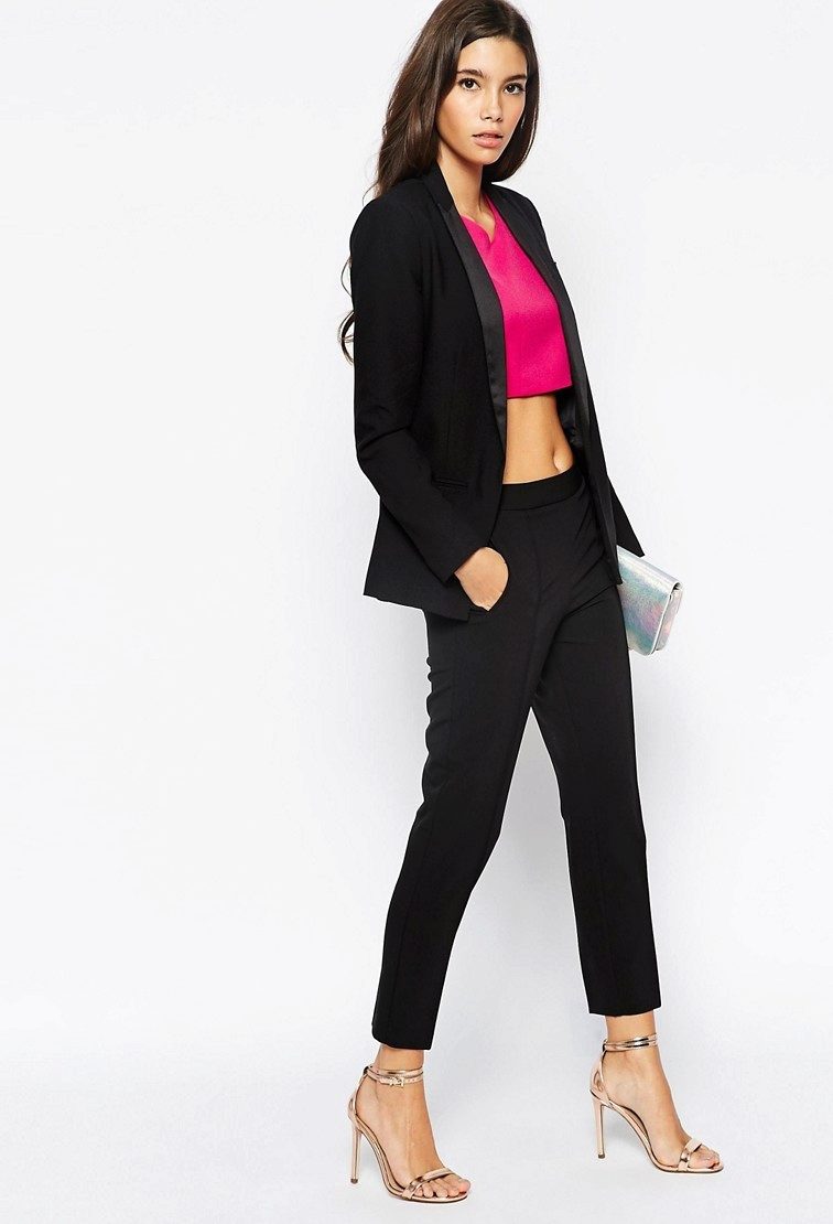 Cropped trousers with a high waist pull the silhouette, visually add growth and make the figure slim and light. This is especially true of skinny models that are ideal for short girls.