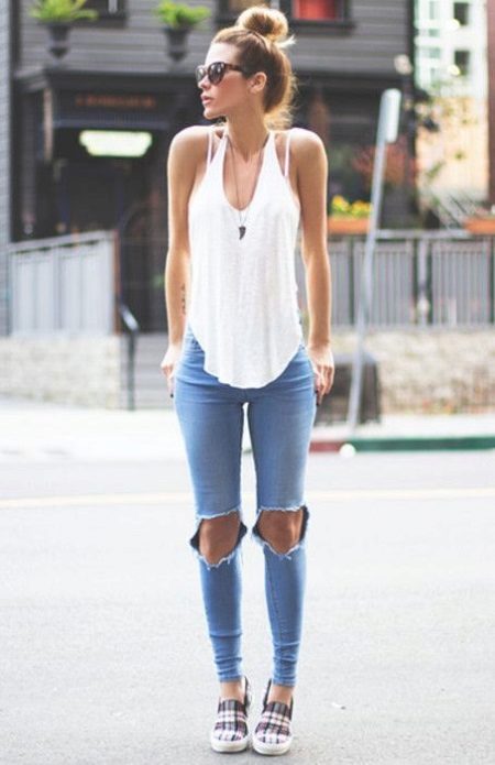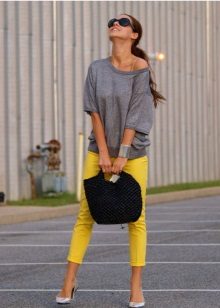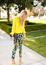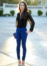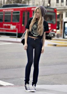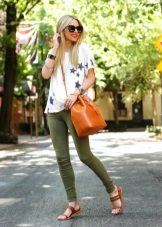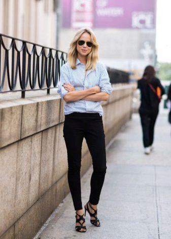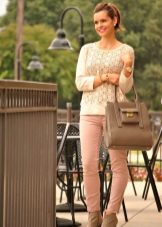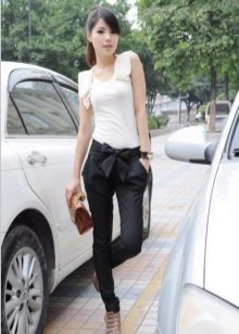 To create a casual look, all the options for tight-fitting trousers are suitable. We wear them with T-shirts, tops, loose-fitting blouses, falling from the shoulders. Under this image we choose short jackets, leather jackets, leather jackets, jackets. Romanticism will give thin air tops in pastel colors, knitted cardigans.