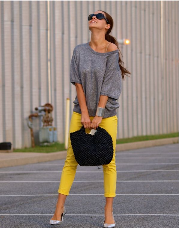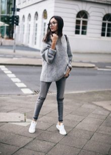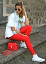 To create a sporty look, leggings, skinny and slim are an excellent choice. We combine them with t-shirts, shirts, sweatshirts. Shoes - sneakers, slippers, ballet flats. We focus on interesting accessories, you can wear glasses, take a bulky bag or backpack.