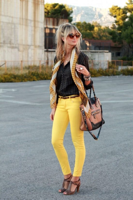 Tight-fitting pants pose a risk to how your silhouette will look. In addition to risks, these trousers have a number of advantages, such as, for example, visually lengthen legs, emphasize the slimness and beauty of the legs and hips.