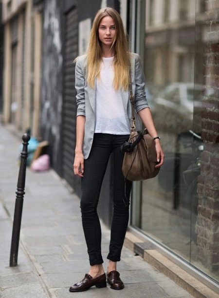 The main thing is to combine tight pants with proper shoes, a harmonious top, to choose the right accessories.