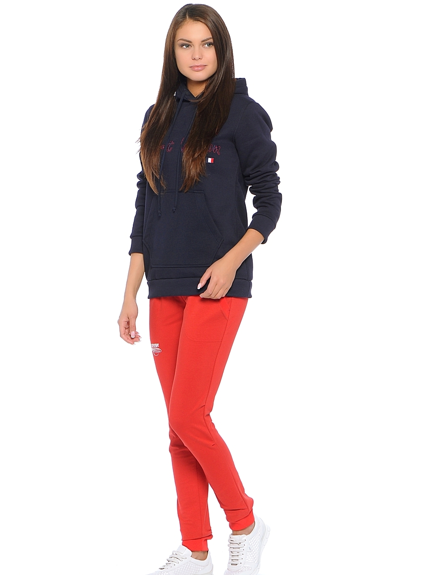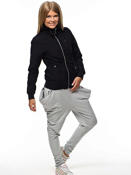 Tight-fitting sweatpants should be worn with sports and casual wear: tops, shirts, T-shirts, windbreakers, sweatshirts, sweatshirts. Laconic pants without pronounced sporting details and style can be combined with shirts, blazers, tunics, jackets. A contrasting image can be completed with high heels, flat shoes, moccasins, sandals. Sneakers and sneakers are always suitable for sports pants. Do not wear flip flops and uggs.