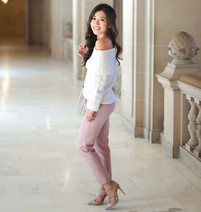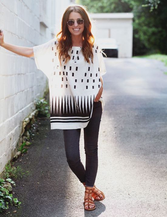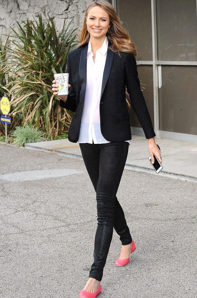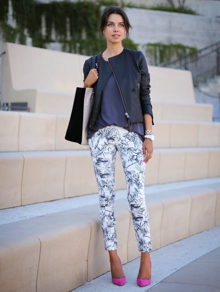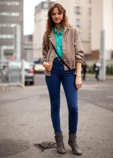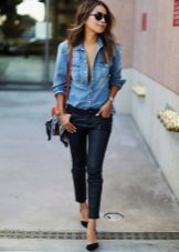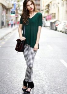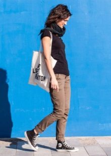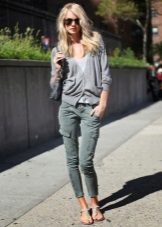 Skinny pants can be combined with a full, loose or fitted top. Follow the simple rule: the wider the bottom of the kit, the narrower the top should be. For example, trousers, breeches are best combined with fitted jackets and fitting tops, and trousers-pipes - with oversized sweaters and loose shirts.