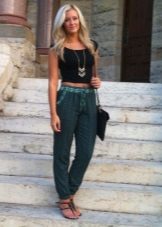 If you can boast of model parameters, that is, rather tall, slender waist, long and slender legs, then your choice is practically unlimited. With such data, you can afford and riding breeches, and skinny, and pants, bananas. It should be noted that the classic straight trousers, tapering downwards, are most suited to this type of figure. All the rest of this style of trousers is recommended to be combined only with shoes with very high heels.