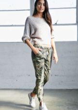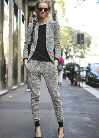 Another style of sportswear. This model of trousers got its name from the English word jogging, meaning jogging. Joggers are very similar to regular sweatpants, with the exception that their trousers are very narrowed down.