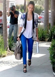 These are trousers or jeans, made of elastic material. These pants sit like a second skin, emphasizing all the advantages and disadvantages of the figure. That is why this style is not recommended as a very thin, and very plump girls.
