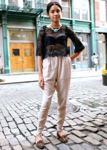 The male models of the narrowed trousers, which served as the prototype for the female version of this clothing, were free in the hips and straight along the entire length, and the narrowing began only in the ankle area. These pants also settled in the women's wardrobe, but the breeches did not use the special popularity of the weaker sex, as this style is capable of spoiling the figure, if its parameters are far from the cherished ideal.