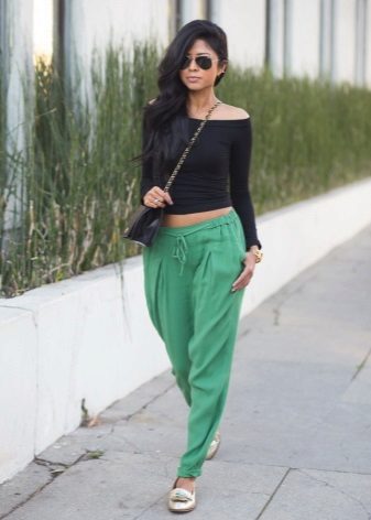 Pipes - look very elegant, compared with models of narrowed trousers with a wide upper part. On the hips, the pipes sit quite tightly, but they do not fit them. These pants are usually slightly shortened, so they should be worn with shoes with heels.