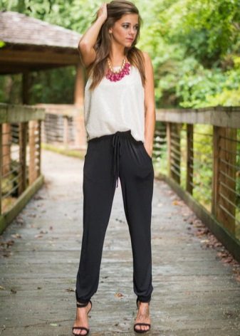 In addition to the features of the silhouette, narrowed trousers differ in the presence / absence of various kinds of structural and decorative elements, such as pockets, belts, zippers, draperies, arrows, etc.