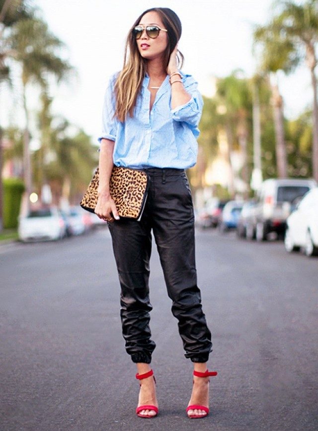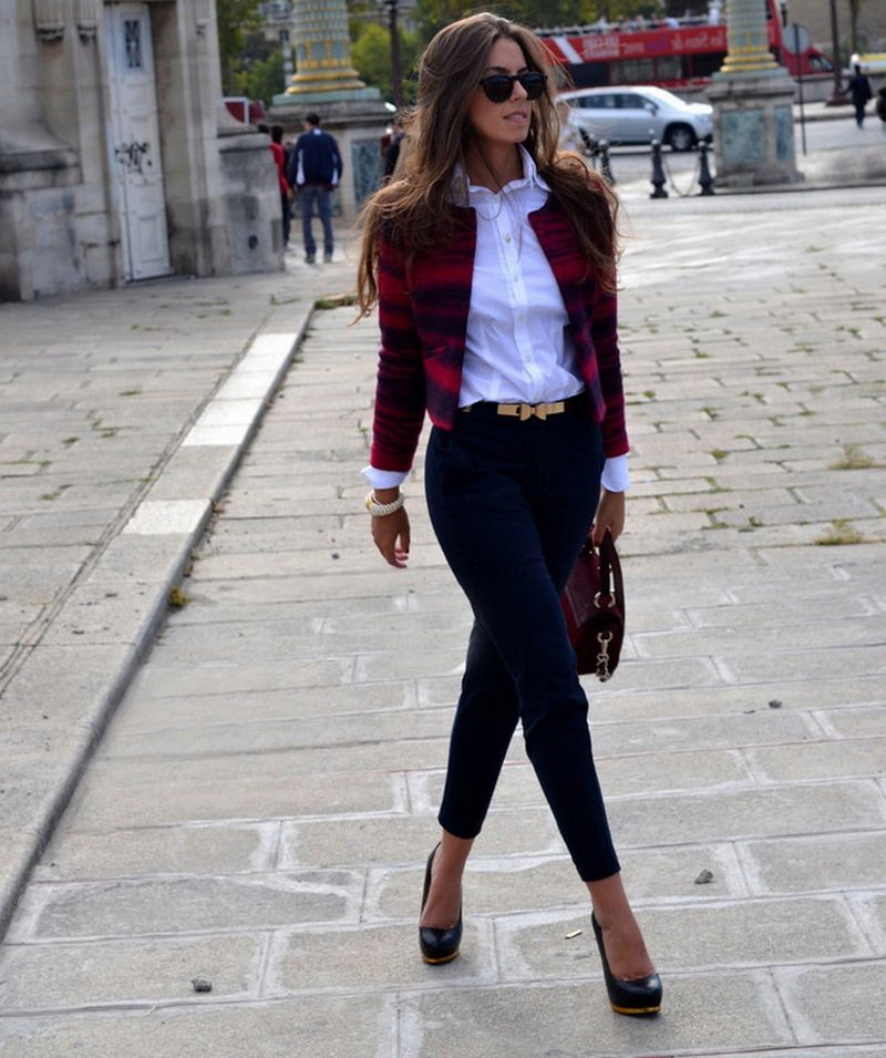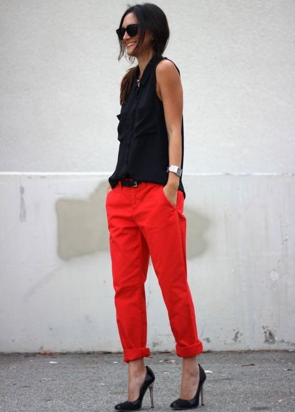 Red trousers look very expressive and always attract attention to themselves, so if you want to catch admiring glances, choose this color variant.