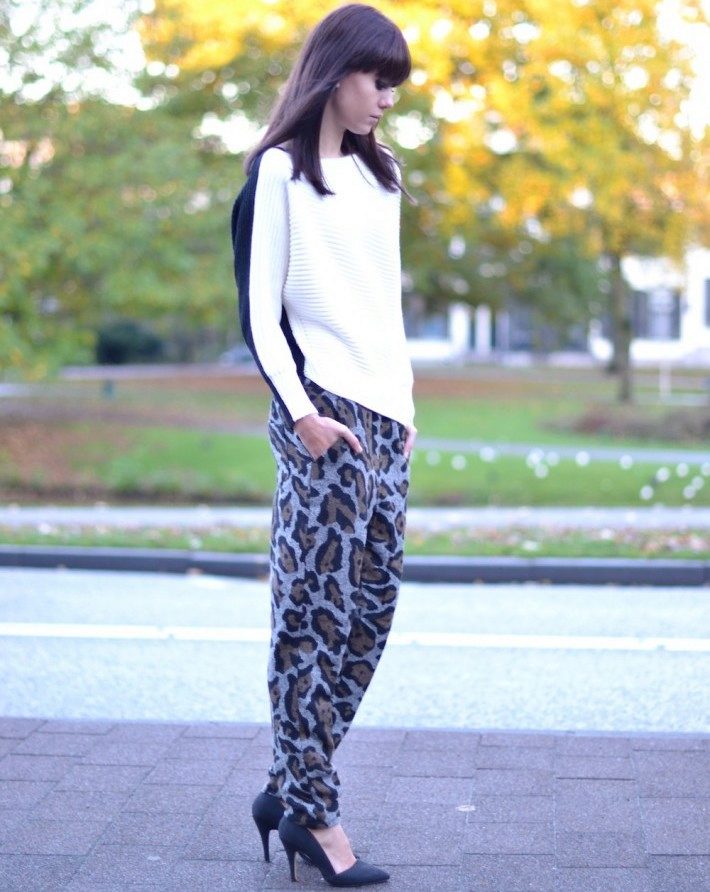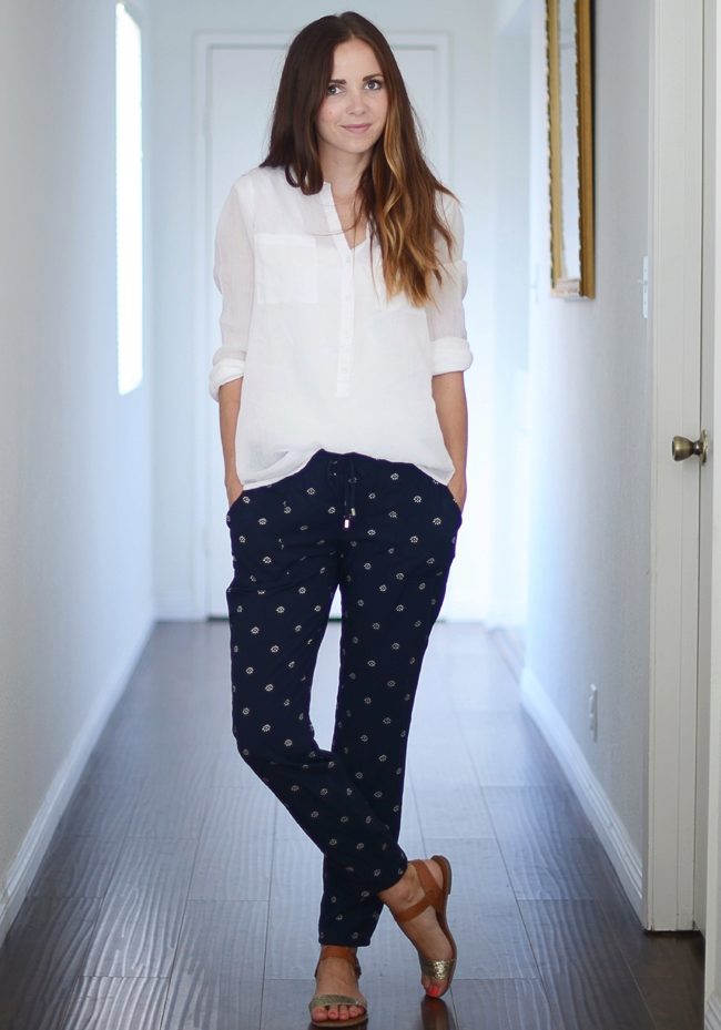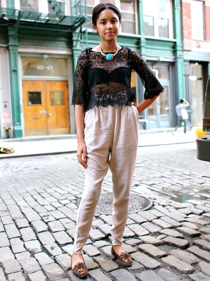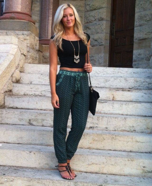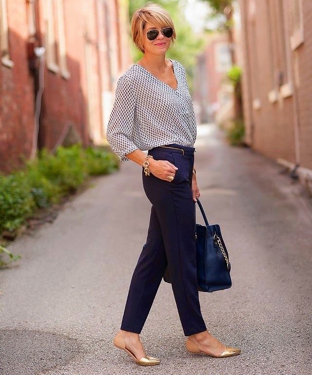 Loose in the hips pants fit girls with luxurious shapes. They will balance a magnificent breast and will hide those extra pounds in the hips. To look even more spectacular, emphasize the waistline with a wide belt (or choose pants with a high yoke).