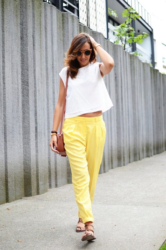 Yellow pants look bright, sunny and cheerful, so they are often present in the summer wardrobe and not only.