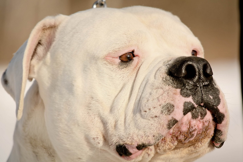 - The muzzle of the American Bulldog has folds that should be looked after.All wrinkles will require at least several times a week to wipe with a cotton swab dipped in an antiseptic, it is important and timely to remove the saliva from the pet's lips.