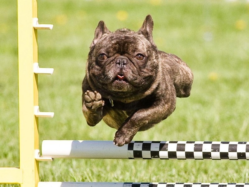 - Increased physical activity. Overeating should not be blamed on the dog, but on its owner, therefore, it is necessary to change the situation by joint walks with mobile games with a stick or ball. At first, the “Frenchman” will be lazy, since the overfed animal’s metabolism slows down and he does not want to move at all. You should not force a pet to run - you should start with short runs, gradually increasing the time and active load. It is important that such a pastime brings pleasure to the dog. It is possible to determine whether the “Frenchman” is overweight by trying to find the edges of the animal. If you manage to do this without difficulty, the dog does not have a sagging abdomen, it moves without shortness of breath, then its weight is normal. In the reverse situation, when the French bulldog is under-weight, you need to act according to the following scheme.