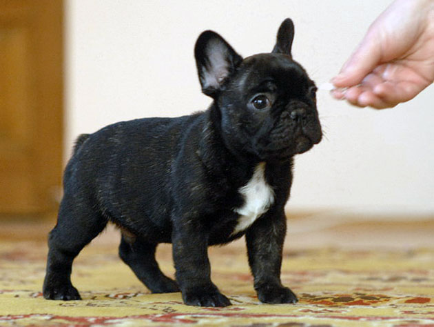 - Insufficient or oversupply. After weaning from the mother, the main criterion for a dog’s weight gain is food. The owner should learn the rules of feeding the French Bulldog. Food should be balanced, nutritious and in the right quantity. Up to 4-5 months, meals should be frequent - 4-5 times a day. This requires a high growth rate of representatives of this breed. Then the number of feedings gradually decreases to 2 times a day by 7-8 months. The best solution would be to purchase special food, since at home to establish a comprehensive balanced diet can be difficult.