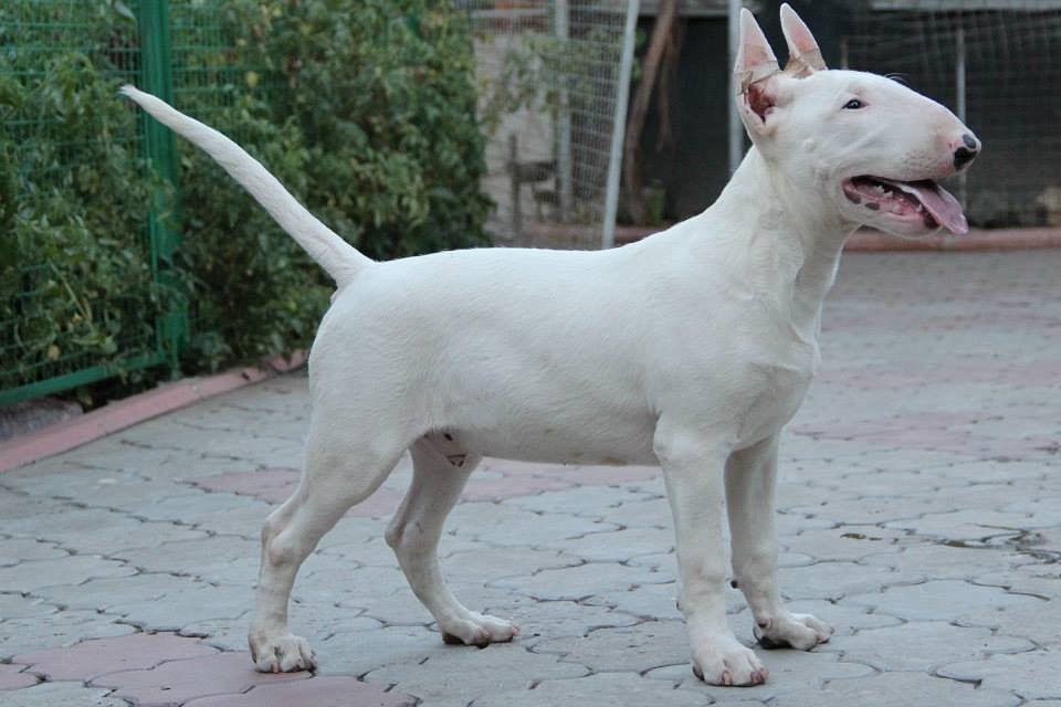 The most common color in bull terriers is white. Moreover, whites are also considered to be those with colored spots on their heads.