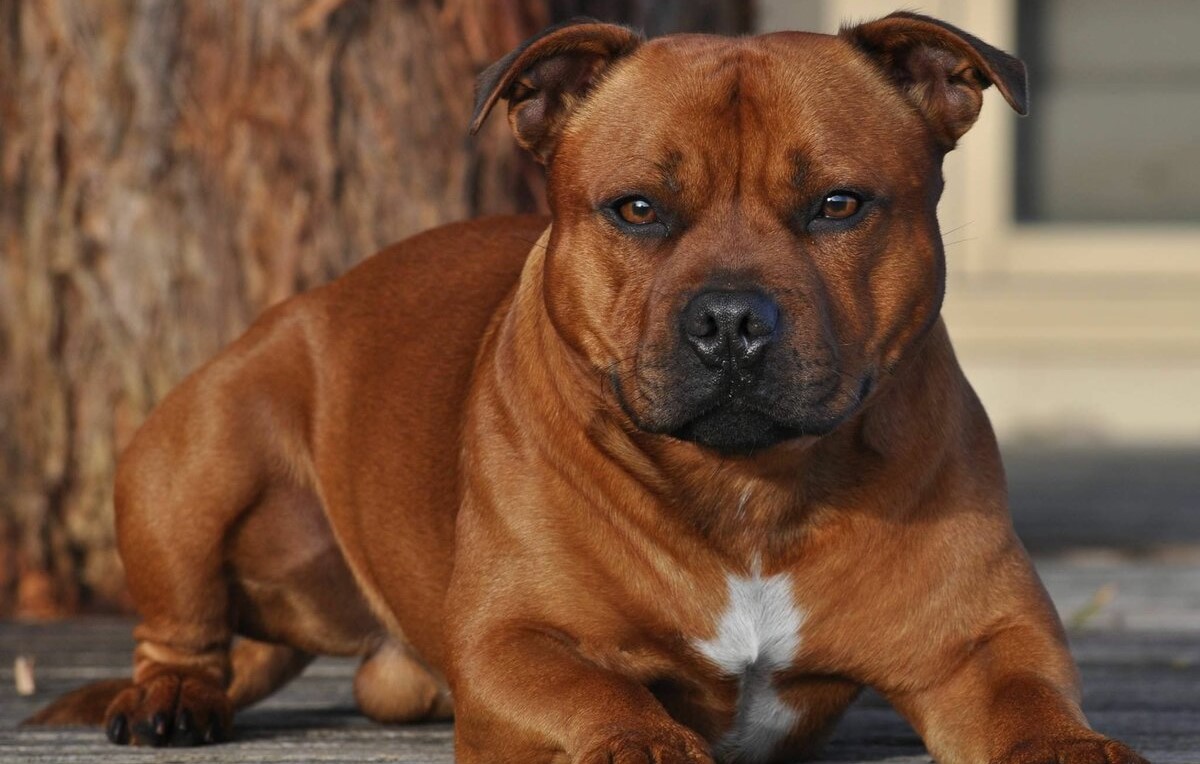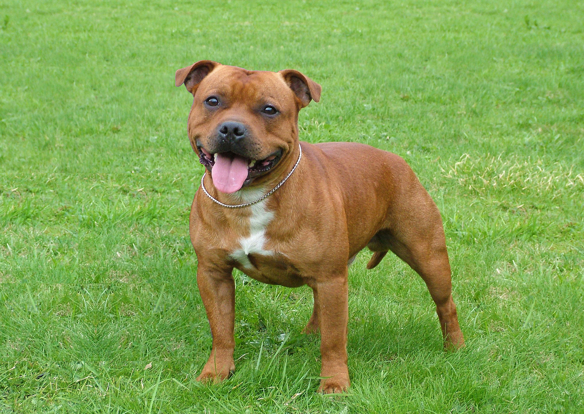 - Staffs have a high pain threshold - they are lighter than other breeds, withstand injuries and even serious wounds.