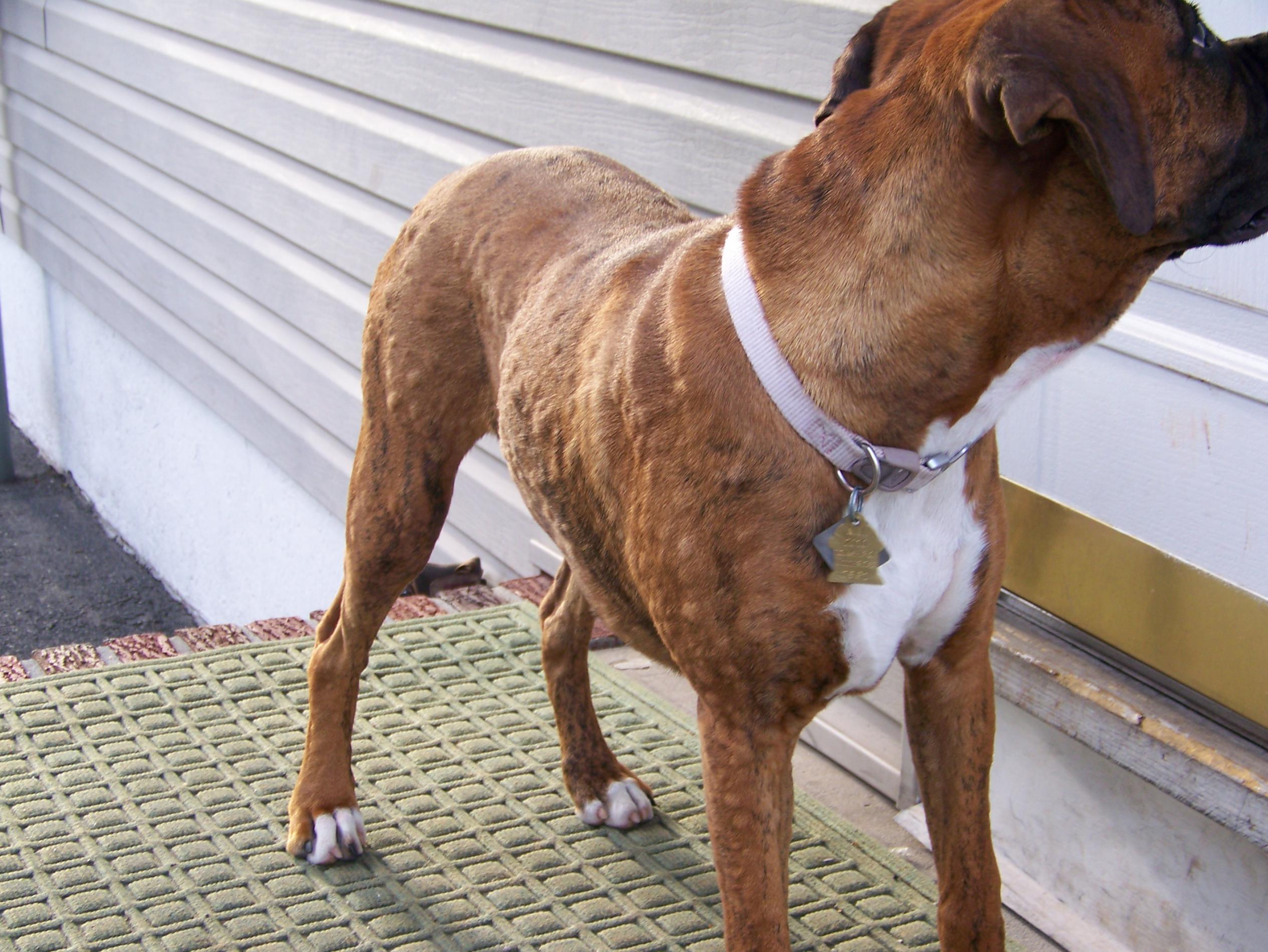 According to the standard, adult stuff looks both massively and elegantly in stature. In males looks great relief muscular system.The dog reaches a height of 40 cm. The average weight of males is 17–20 kg, the bitch is 15 kg. The coat is short and tough and, along with coarse skin, is well adapted to protecting the dog’s body in combat fights.