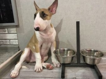 As for banned products, it is especially worth noting fatty meat, fried and salty foods, food with lots of spices. Raw river fish and sweets can not be given to bull terriers, the same goes for baking. They feed the dogs twice a day: in the morning and in the evening. If you have a puppy, then at first the food is served 5-6 times a day, then the intervals are reduced.