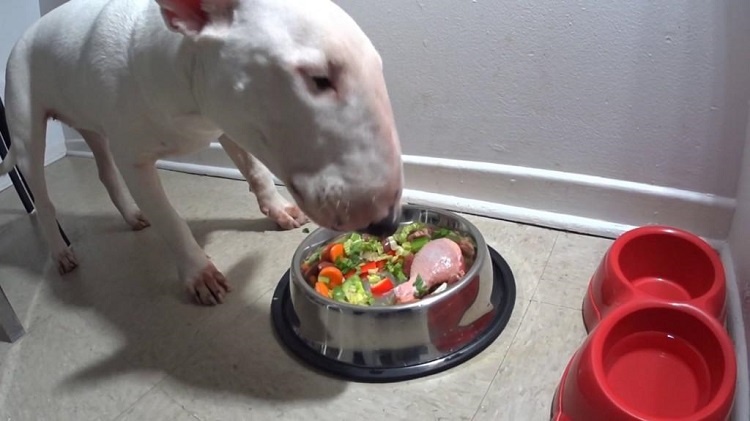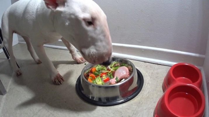 The diet of the bull terrier is of two types: feeding with dry feed or natural food. The first option is good because the owner will not need to clearly think out the feeding plan and select the necessary ingredients. Do not need and buy additional vitamins for harmonious development. But it is worth noting that Dogs can be fed only with first-class feed, cheap formulations will lead to many health problems.