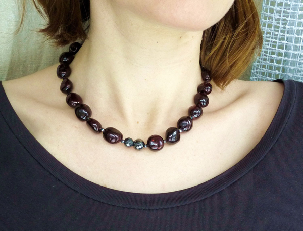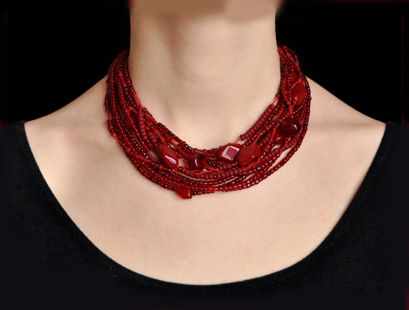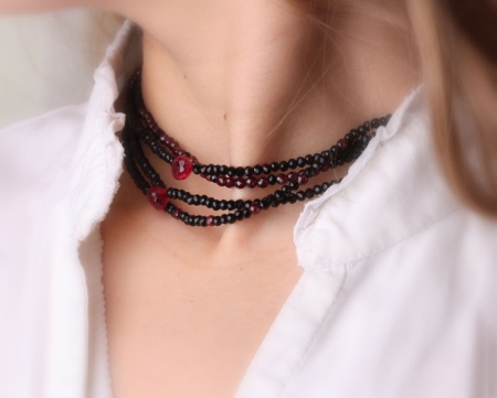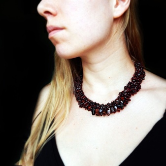 Often, the classic versions of the beads are made of charming polished minerals. You can choose not only a bright decoration, but also a product of deep dark red color.