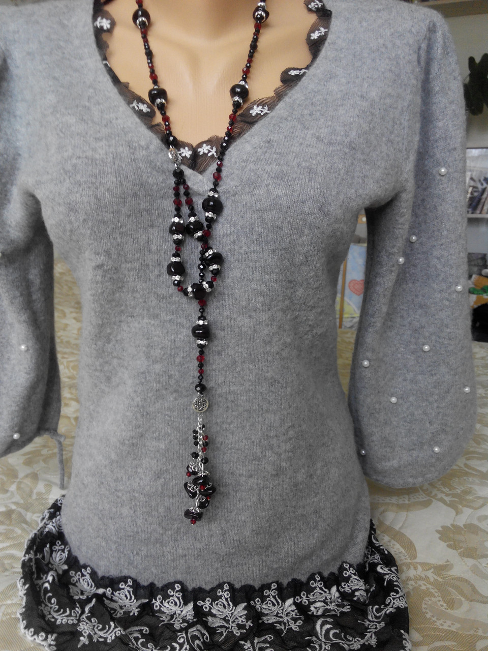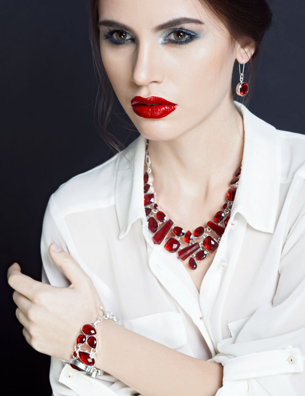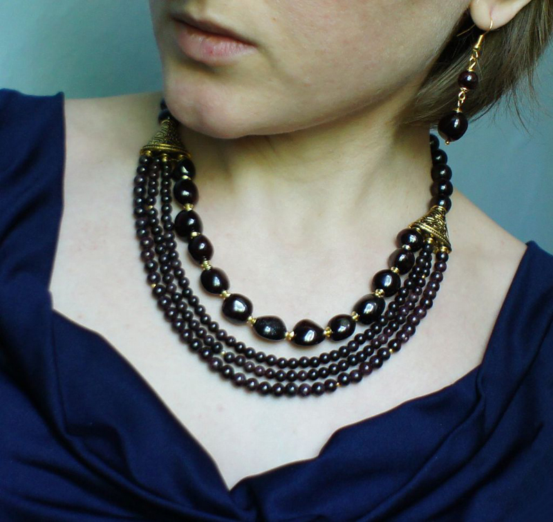 - Beautiful and eye-catching jewelry will be a great addition to casual outfits. You only have to comply with one important condition: clothes must be made in neutral or pastel colors. You can choose a simple blouse with a long sleeve or a sweater with jeans and add this ensemble with classic garnet beads.