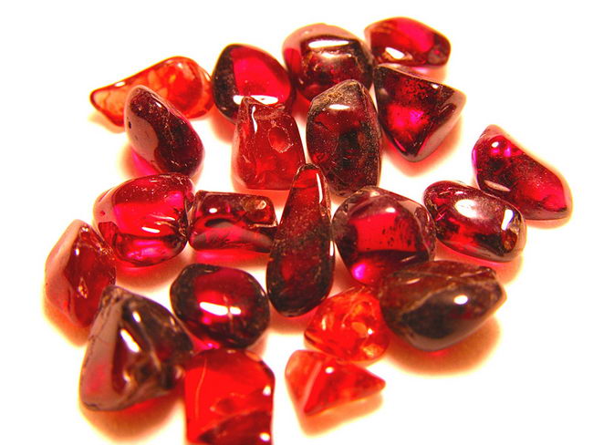 There are many different versions concerning the origin of this bright mineral. One of them says that the stone acquired its name because of its similarity with the fruits of the pomegranate tree. They have the same shape and color.