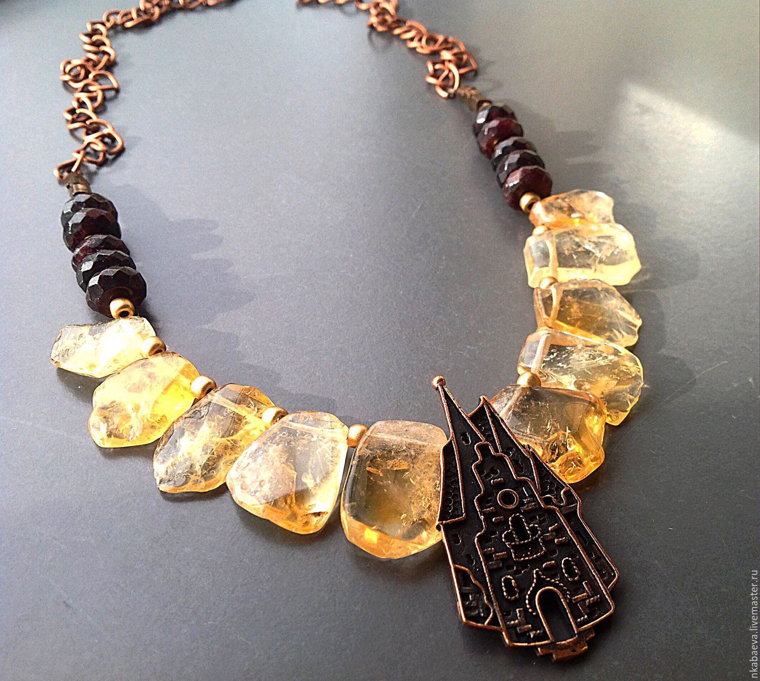 Gold just looks fabulous with dark red garnet. Beads with similar elements are not only beautiful, but also mysterious. Their design is able to give the lady a special chic and elegance.