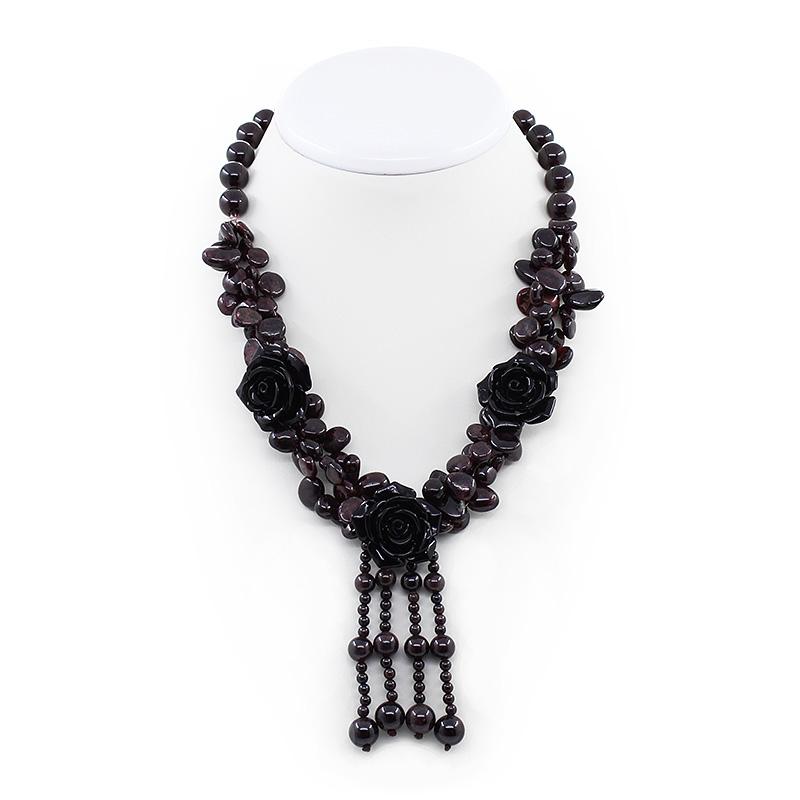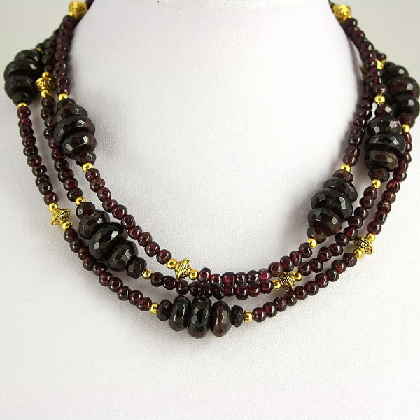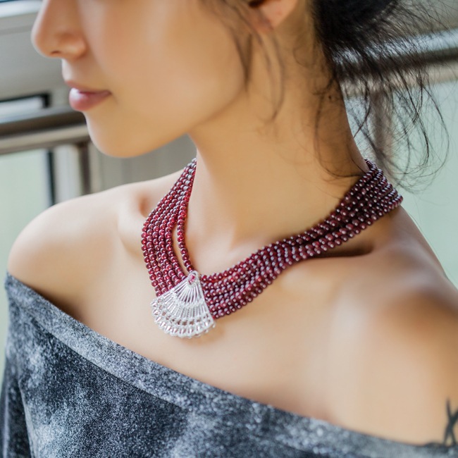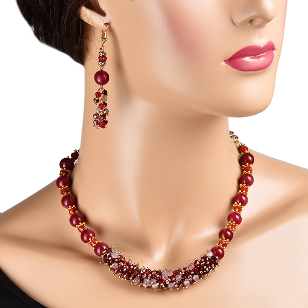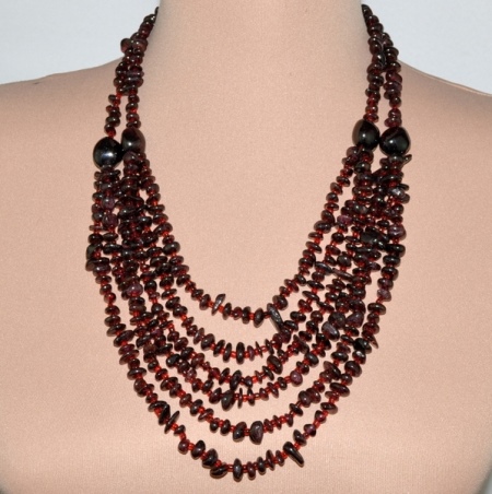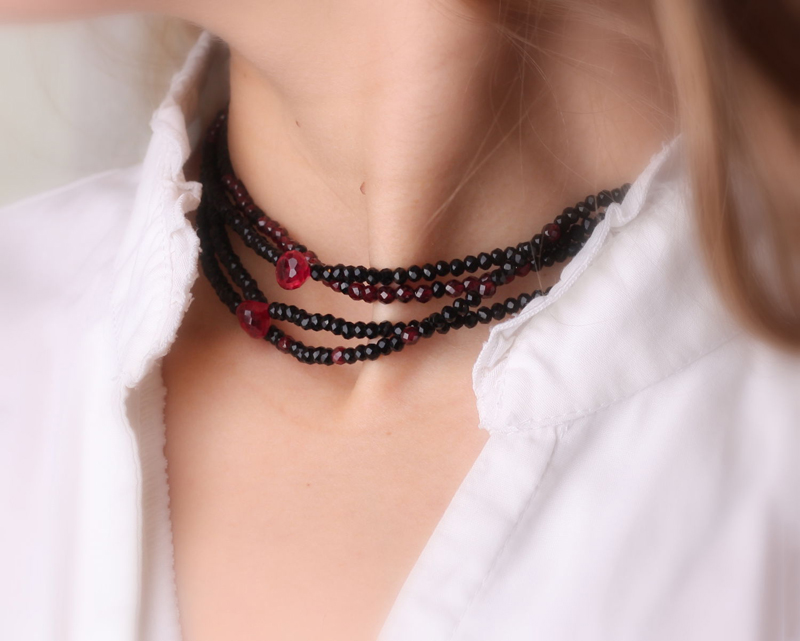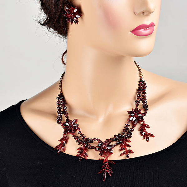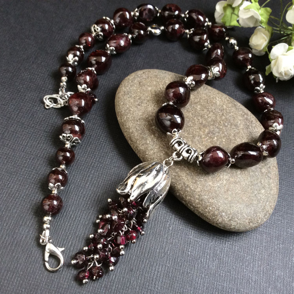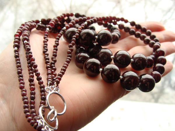- Garnet beads can be worn with many casual outfits. To create a gentle and airy style, you can choose a light blouse, blouse or button-down shirt and skirt. With this kit will look great bright accessory.