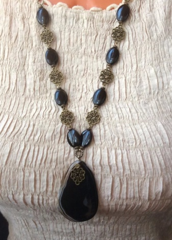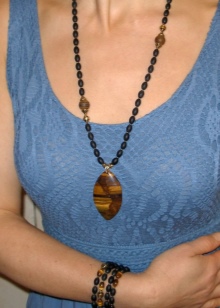 Office decoration option - best suited dark shades of the mineral. Designers do not recommend wearing brown beads in combination with black office clothes. It will look cheap and make an old woman.