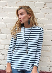 In summer, blue, yellow or green striped beads will be appropriate. The image can be complemented with the same shade as a bag and a business skirt. For everyday style, it is advisable to use yellow stones and blue skinny jeans. The image should be completed with earrings or a bracelet made of stones of the same color.