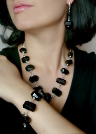 Jewelers in their works use various colors of the mineral, but especially popular - this is Brazilian black agate. It is incomparably combined with precious metals. Incredibly beautiful beads of faceted black agate. Such a mineral is mined in America, Brazil and Mongolia.