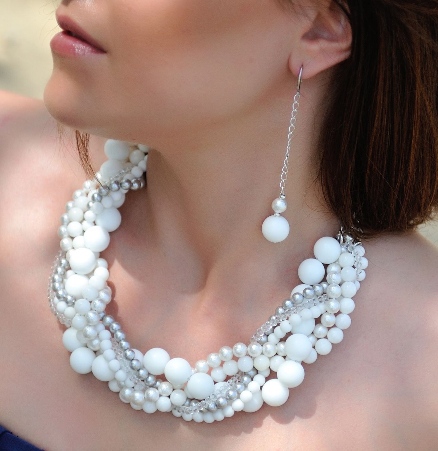 White "frosty" mineral to match the Snow Queen. Same strict and refined. Beads made of white agate will be a great addition to the wedding dress. You can purchase stones separately and create your own unique jewelry.