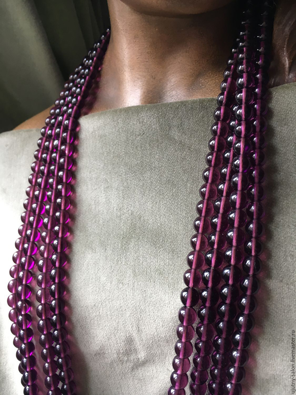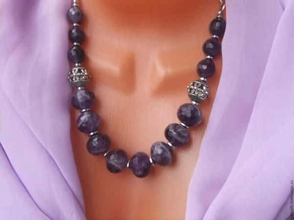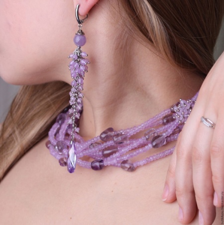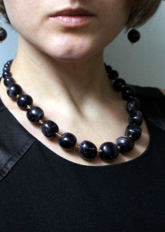 It will emphasize the toilet, and if it is an evening dress, then the woman in such beads will be in the center of attention. Beads from amethyst jewelry are pure minerals with a uniform cut. Stones can have various sizes and shapes.