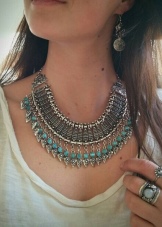Today, jewelers design a variety of turquoise jewelry, complemented by other gems or metal elements. You can find such beads, which are more like a real necklace. In such instances, the beads are complemented with a few drop-shaped pendants on the front.